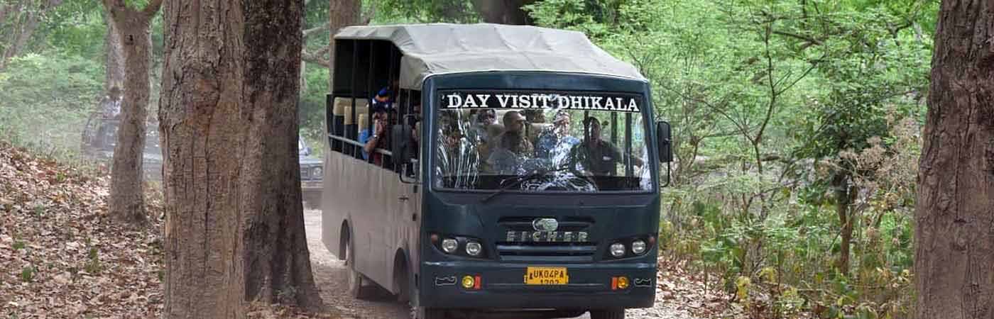 The number of vehicles permitted to enter for day Safari in a particular zone is distributed as: Bijrani and Jhirna 30 Safari for each zone are allowed at a time while from Durgadevi only 15 Safari are allowed respectively within the Corbett National Park.